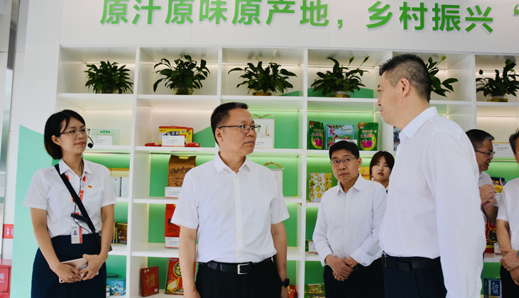 图为赵冲久一行调研广西南宁金浦路邮政支局服务乡村振兴情况。